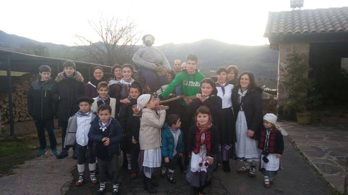 Eguerdi aldera, etxe guztietan kantatu eta urtetxak bildu ondotik, norbera bere etxerat joaten da.