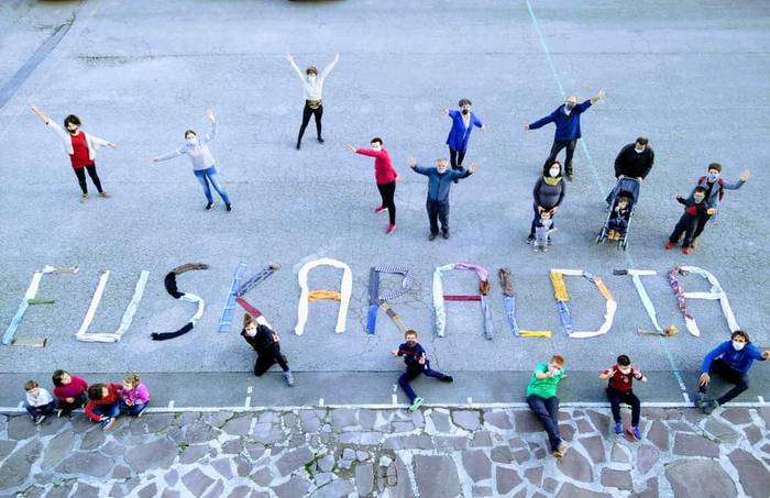 Euskaraldia sustatzeko asmoz Baztango herritarrek euskaraldiko hizkiekin argazki bat atera eta sare sozialetan partekatzeari ekin diote.