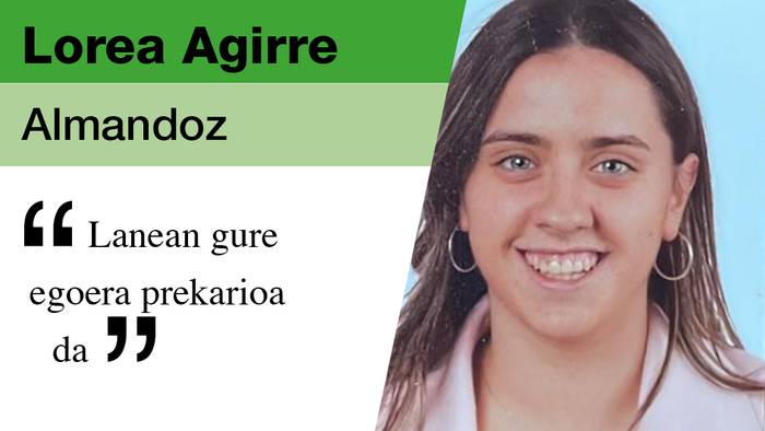 Duela lau urte hasi zen Benito Mennin Lorea Agirre, patologia mistoko egoitzan, erizain laguntzaile. Garbi dio: «Gure egoera prekarioa da eta zaintza duina izateko lan baldintzak aunitz hobetu behar dira: lanordu aunitz, egutegi kaxkarra, zazpi-bederatzi lanegun segidan... Gainera, gehienetan langileak falta dira eta lan zama handitu egiten da, eta horri ez diote garrantzirik ematen. Gure lana ez da baloratua. Gaztea naiz eta ez dakit non akituko dudan, baina argi dut mundu feminizatu honetan borroka egin behar dela».