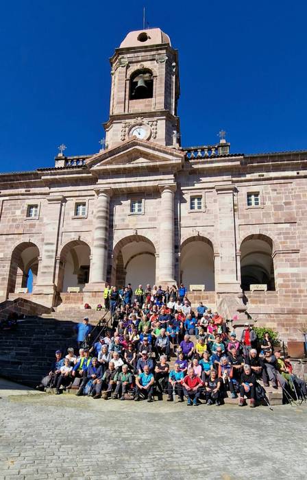 Arkupeak elkarteko mendizaleak Zigako eliza dotorearen atarian.
