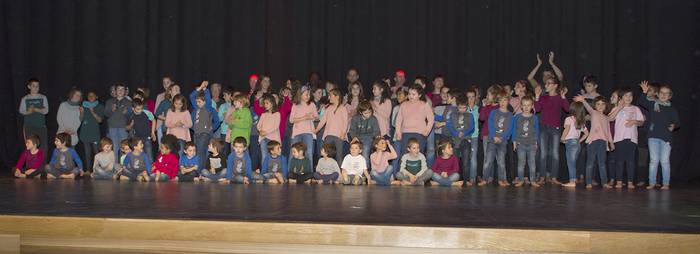 Ekitaldiaren azken zatian, pasarelan nahiz eszenatokian, ehun bat ikaslek, gurasok, amatxi-atatxik, ikasle ohik eta laguntzailek parte hartu dute Oinezeko arropa eta osagarrien desfile koloretsuan. Batzuk desfilatzen eta bertzeak koreografia ederrak erakusten… Bakoitzak ederki gauzatu du bere zeregina.