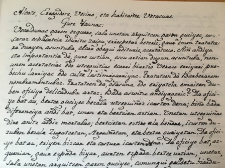 Uscaldunac garen ezquero testu honen lehenengo hitzak dira, “elkar hobeki aditzeko” asmoz beratar guztiei zuzendutako euskarazko idatzia.