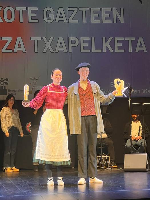 Amane Uranga tolosarra eta Ioritz Iriarte lesakarra, txapeldunordeen sariekin.