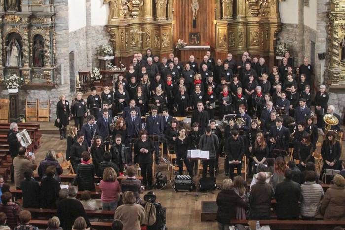 Lehenik agurra dantzatu zuen Patxi Iribarrenek. Segidan, Ainara Narbartek zuzenduta, Adeste Fideles eta Elurra mara mara kantatu zuten eskolako gaztetxoekin batera. Getariko Musika bandak, Eneritz Jauregiren zuzendaritzapean, euskal dantzak jo zituen. Imanol Kamiok zuzenduta, Ozenki Abesbatzak Doinu Zaleko akordeolari orkestrarekin Czardas de Monti abestu zuen; Umore Ona abesbatzak, Eneko Amundarainek zuzenduta Aurtxoa seaskan kantatu zuen eta Imanol Kamio zuzenduta, Svetilen eta Atot ator, bietan Ainara Narbarte bakarlari zutela. Emanaldia bukatzeko, musika bandak eta abesbatzek elkarrekin Somewhere, Birjiña maite, Festive Chrismas, Celebration eta Gospel Train eskaini zituzten, eliza betetzen zuten zaleen gozamenerako.