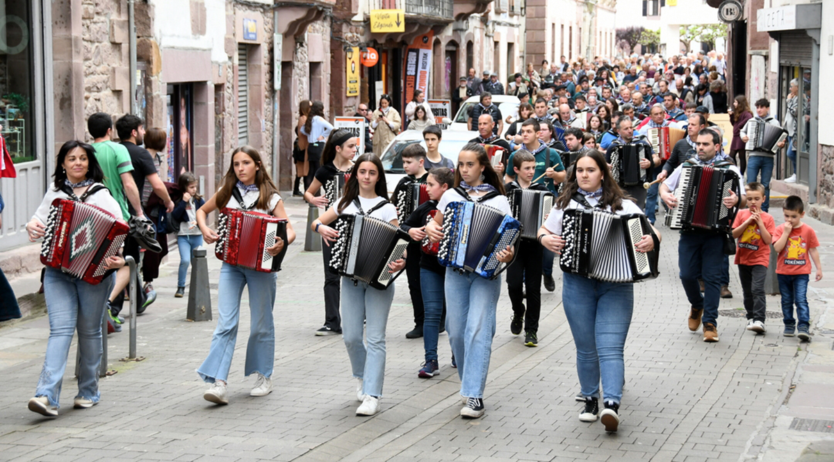 Topaketa 11:00etan hasiko da eta eskolako jantokitik abiatuta, kalejiran joanen dira herriko plazara. 12:00 aldera ongietorria egin eta gero, kalez kale ibiliko dira. Kalejira eskolako jantokian bukatuko dute 14:00etan. Bazkaria 14:30ean izanen da Santamaria jatetxearen eskutik. Bazkalondoan hainbat saski zozketatuko dituzte eta horretarako boletoak salgai jarriko dituzte. 17:00etan kontzertuak izanen dira jantokian eta 18:00etatik aurrera akordeoilariak herriko tabernetan joz ibiliko dira.