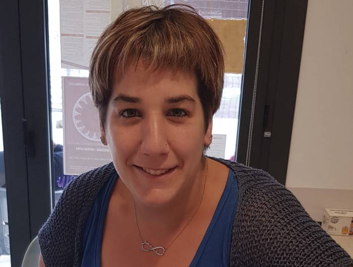 «Harat-honatean ibiltzea» du gustuko eta halaxe pasatu ohi du eguna: «lanetik ateratzen naizenean, seme-alaben bila joaten naiz. Eskolaz kanpoko jarduerak direla eta ez direla, arratsaldean haiekin bueltaka ibiltzen naiz». Goizez, berriz, «Donezteben, osasun etxean» lan egiten du: «hitzorduak emateaz eta tramiteez arduratzen naiz».