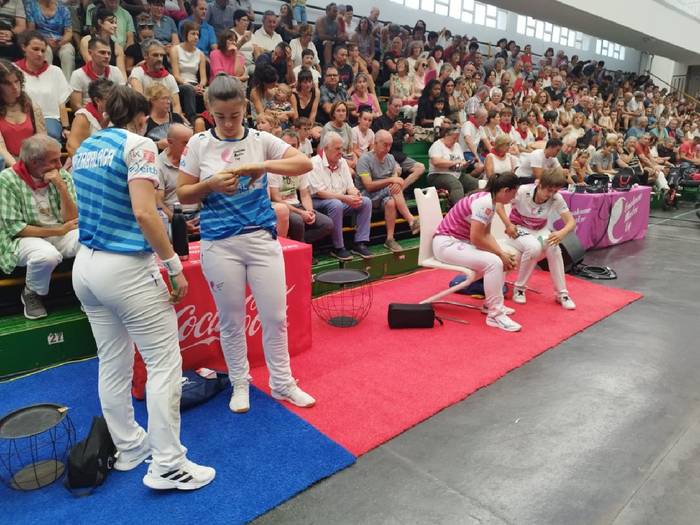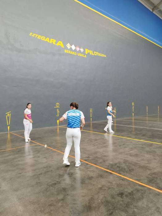 Jaialdia ireki zuen partidan ere gauza eder aunitz ikusi ahal izan ziren, nahiz eta Arraiza-Erasun errazago, 22-11, nagusitu zitzaizkien Etxegarairi eta Nahia Bertiz sunbildarrari. Modako pilotaria, Itxaso Erasun, atzeko koadroetara itzuli zen Bilbon kaiolan sekulako erakustaldiak eman ondoren eta bera izan zen partidako onena, gibelean Bertiz gazteari erabat nagusitu baitzitzaion. Dena dela, Sunbillako atzelariak itxura ona utzi zuen eta onenen artean leku bat egiten ari dela berretsi zuen. Aitzinean, Arraizak etekina atera zien bere atzelariak irekitako zuloei.
