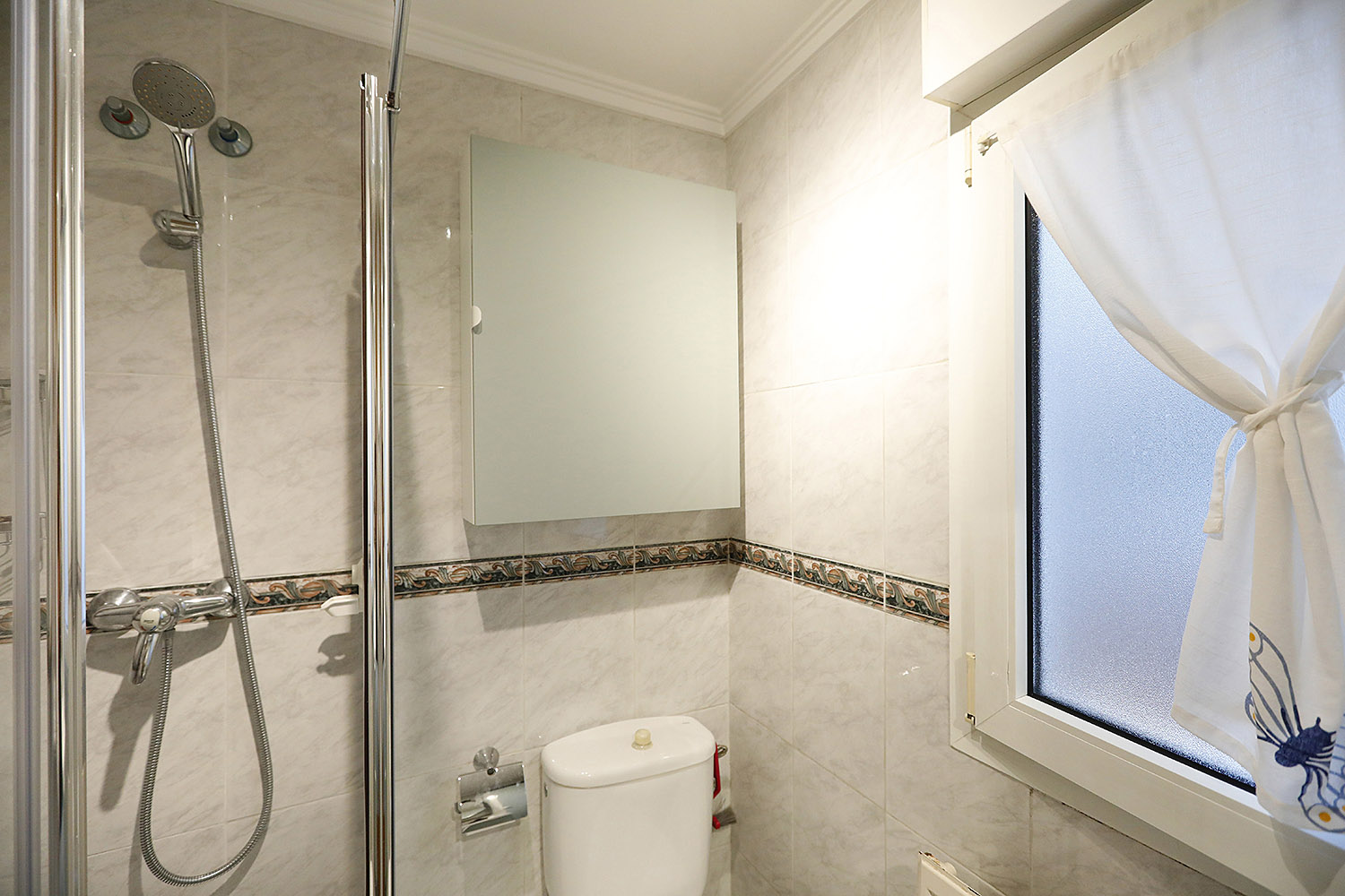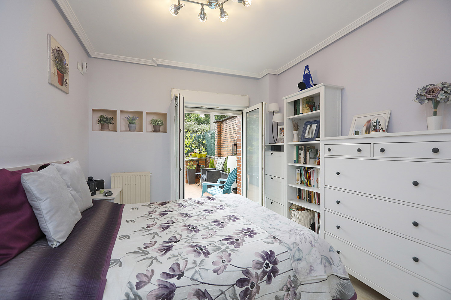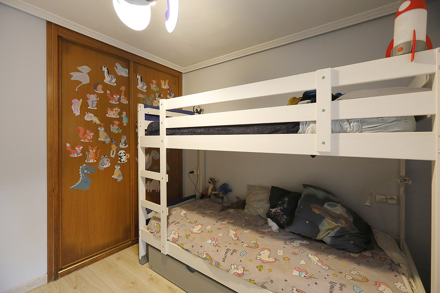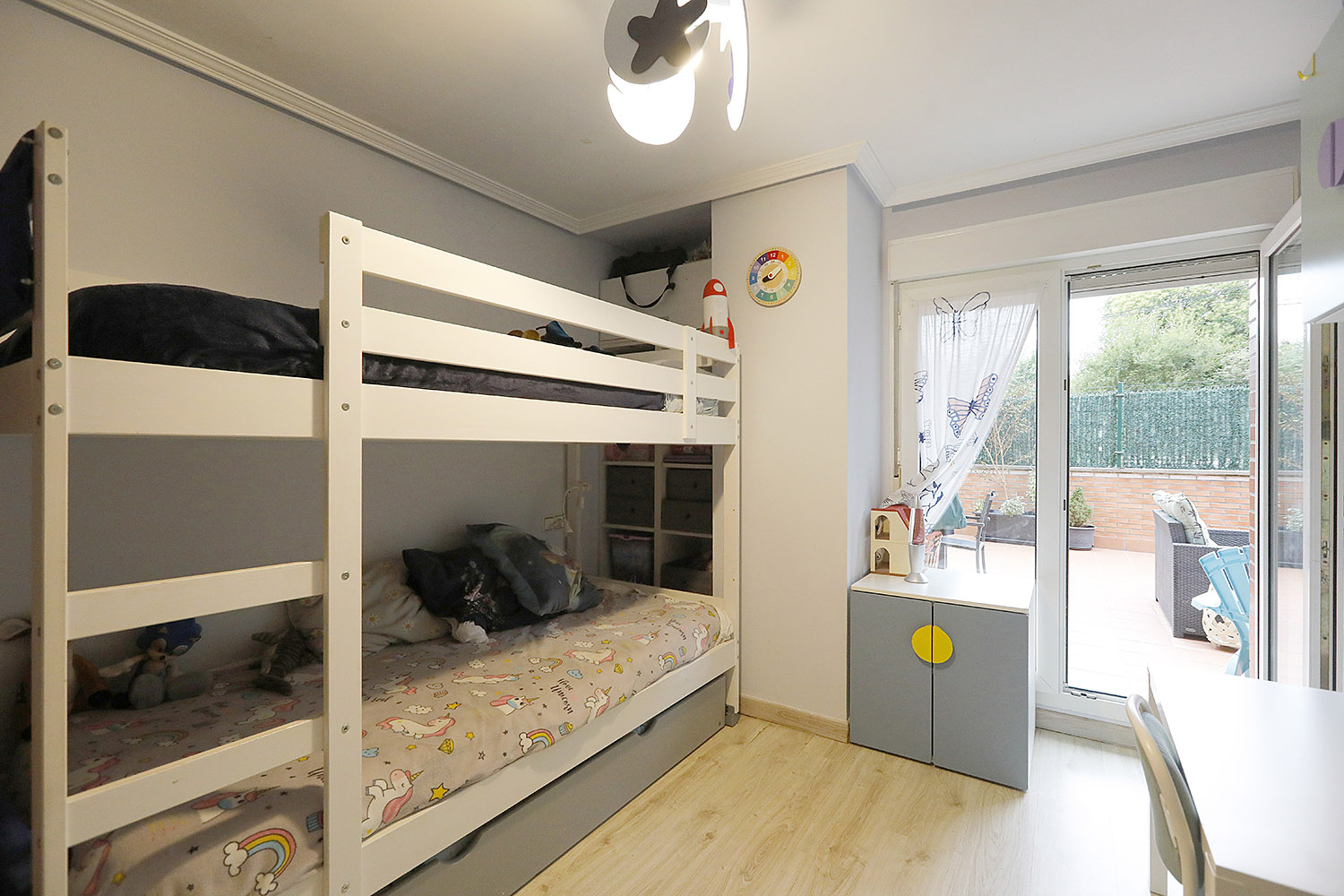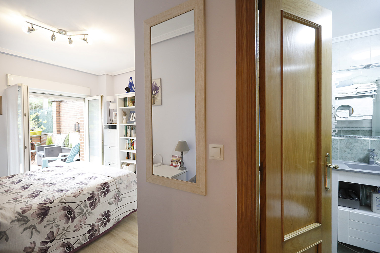 • Bi logela pareta armairuekin, horietako batek badu bainugela.