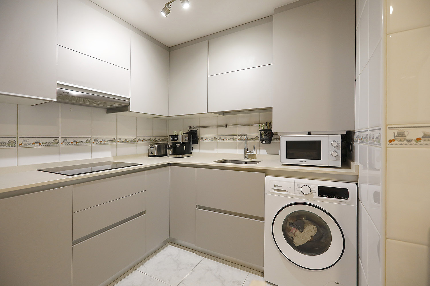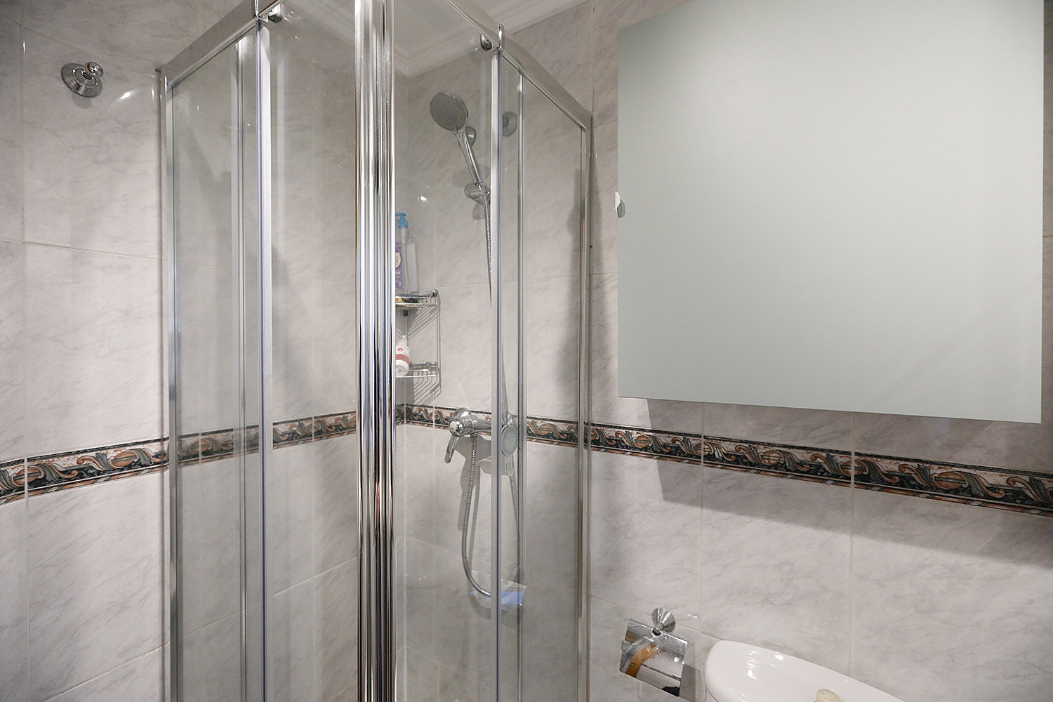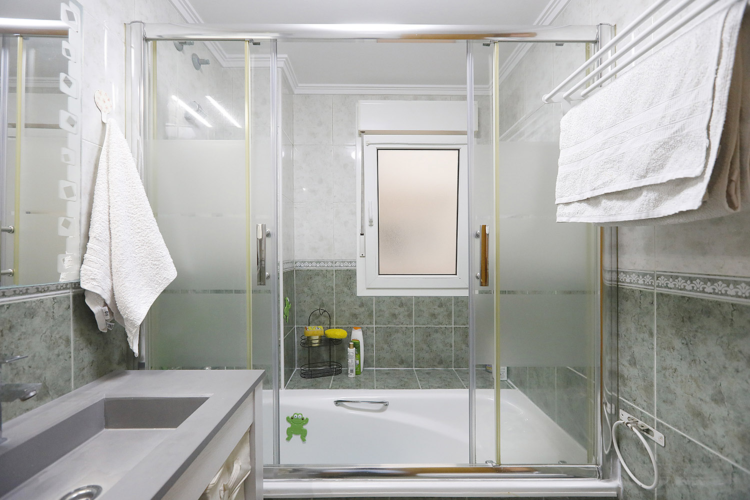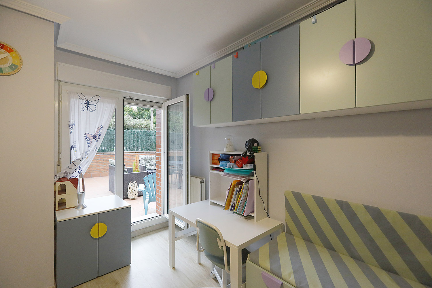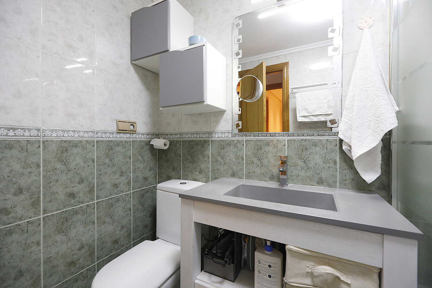 • Bi logela pareta armairuekin, horietako batek badu bainugela.