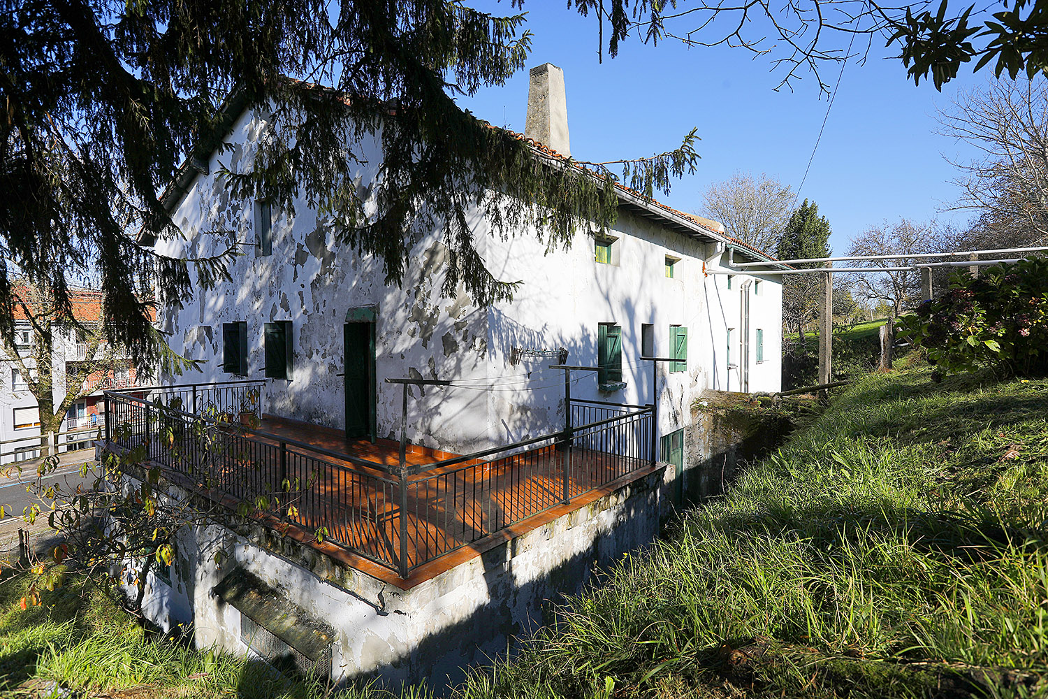 1. solairuan (135 m2): bizitza nagusia. Sukaldea, egongela, 4 logela eta bainugela. Sukaldeak terraza handira ematen du eta 2 logelek balkoira.
