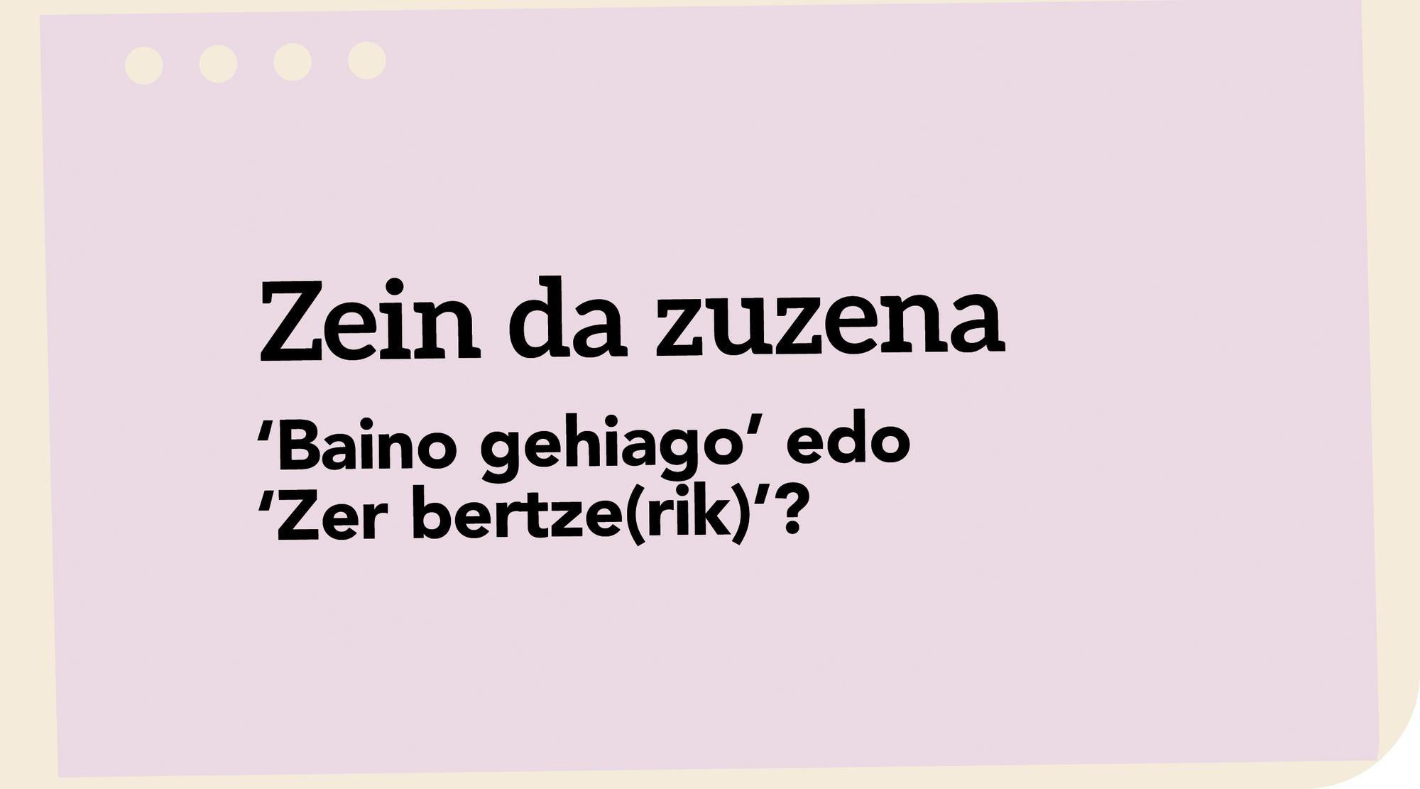 - *Erran marrazkikoak baino zer gauza gehiago behar den mendirako > Erran zer bertze(rik) behar den mendirako, marrazkiko gauzez gainera / Erran bertze zer behar den mendirako, marrazkiko gauzez gainera. / Erran, marrazkiko gauzez gainera, zer (bertze/bertzerik) behar den mendirako.